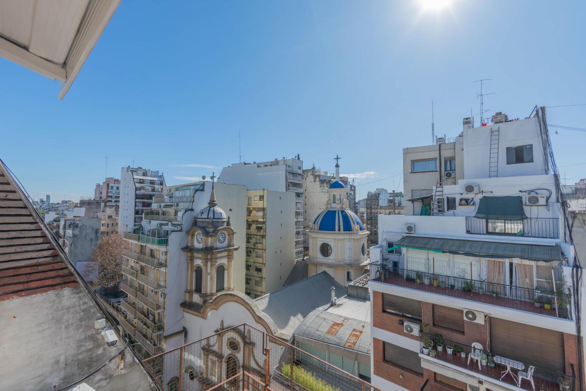 Vista abierta sobre la cúpula de la Iglesia del Carmelo, con luminosidad todo el día; hecho a nuevo en su totalidad, manteniendo el encanto de sus pisos originales en mosaico pulido y parquet impecable en los dormitorios.