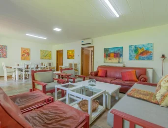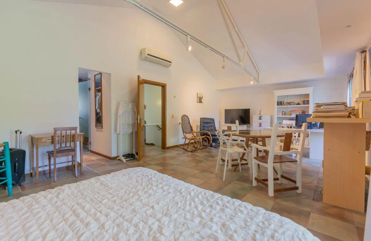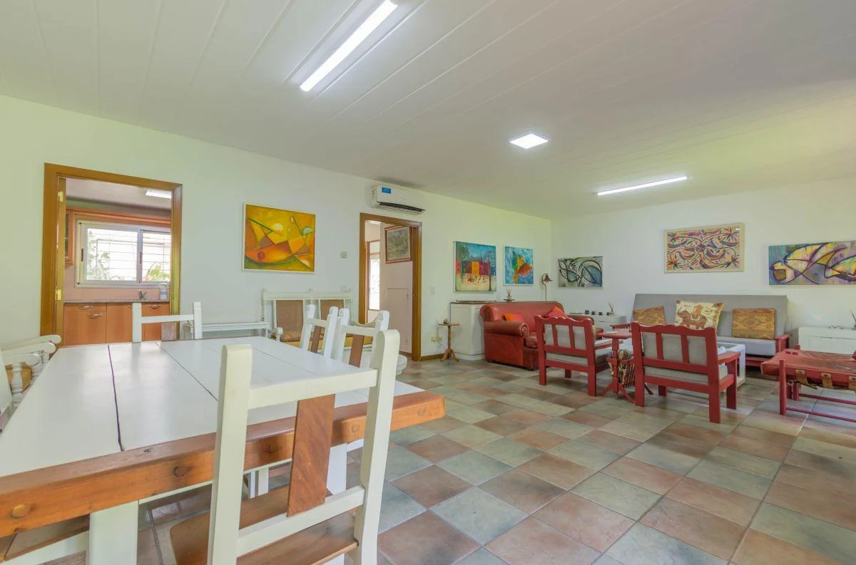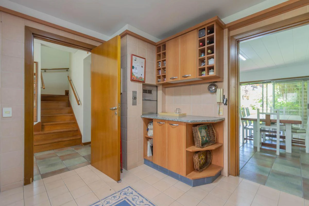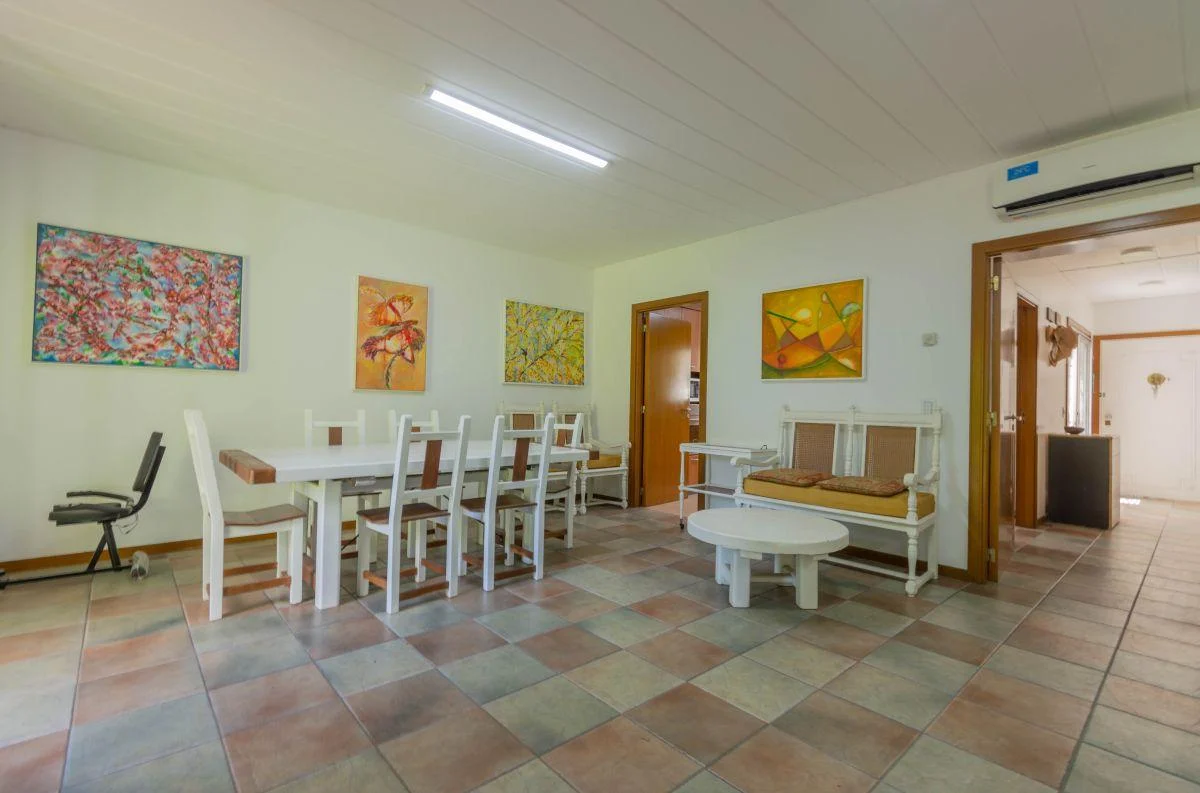 Planta baja: 1 dormitorio en suite con baño privado+ toil de recepción + amplia cocina con montaplatos+ comedor (mesa para 12 personas) y living con galería vista al parque.