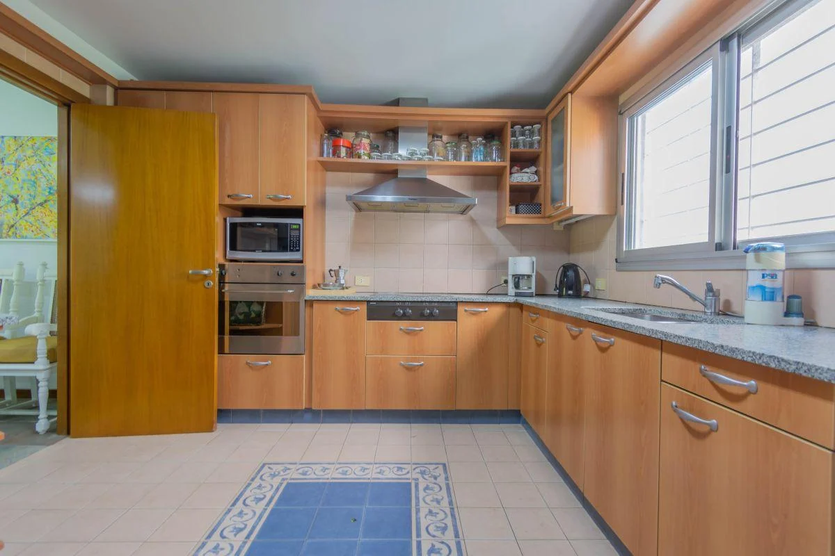 La cocina cuenta amplias mesadas, heladera, horno + anafe y equipo microondas. Posee