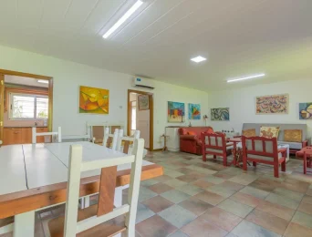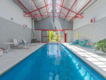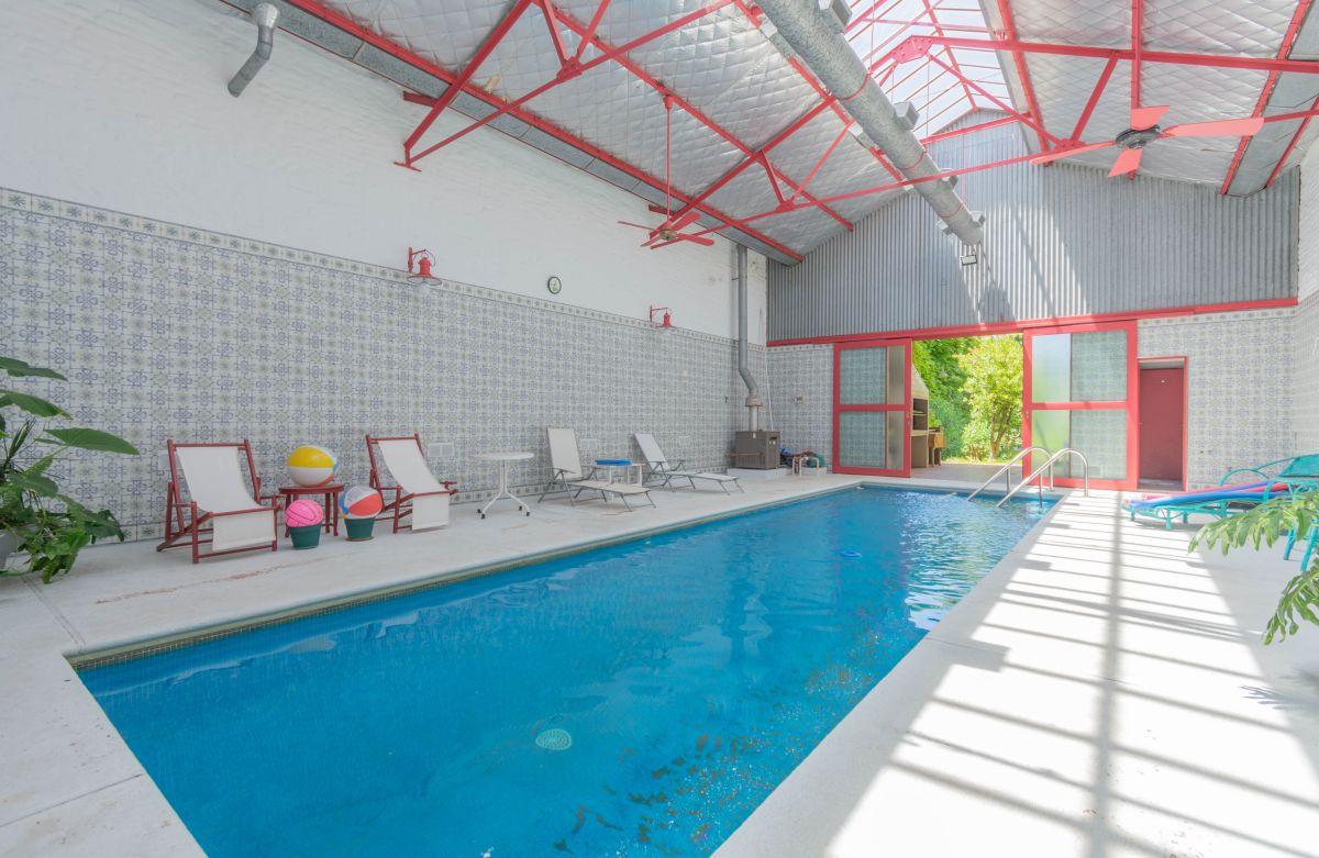 Sector piscina: Piscina cubierta con espejo de agua de 10 x 3.5 mts (profundidad variable 0.8/2.20) ubicada en amplio reciento con luz natural por techo de vidrio + luz artificial y ventiladores de techo. Anexos: baño + vestuario con ducha+ galería cubierta con parrilla y amplia vista al parque.