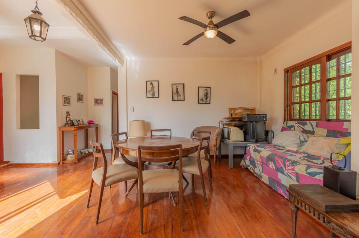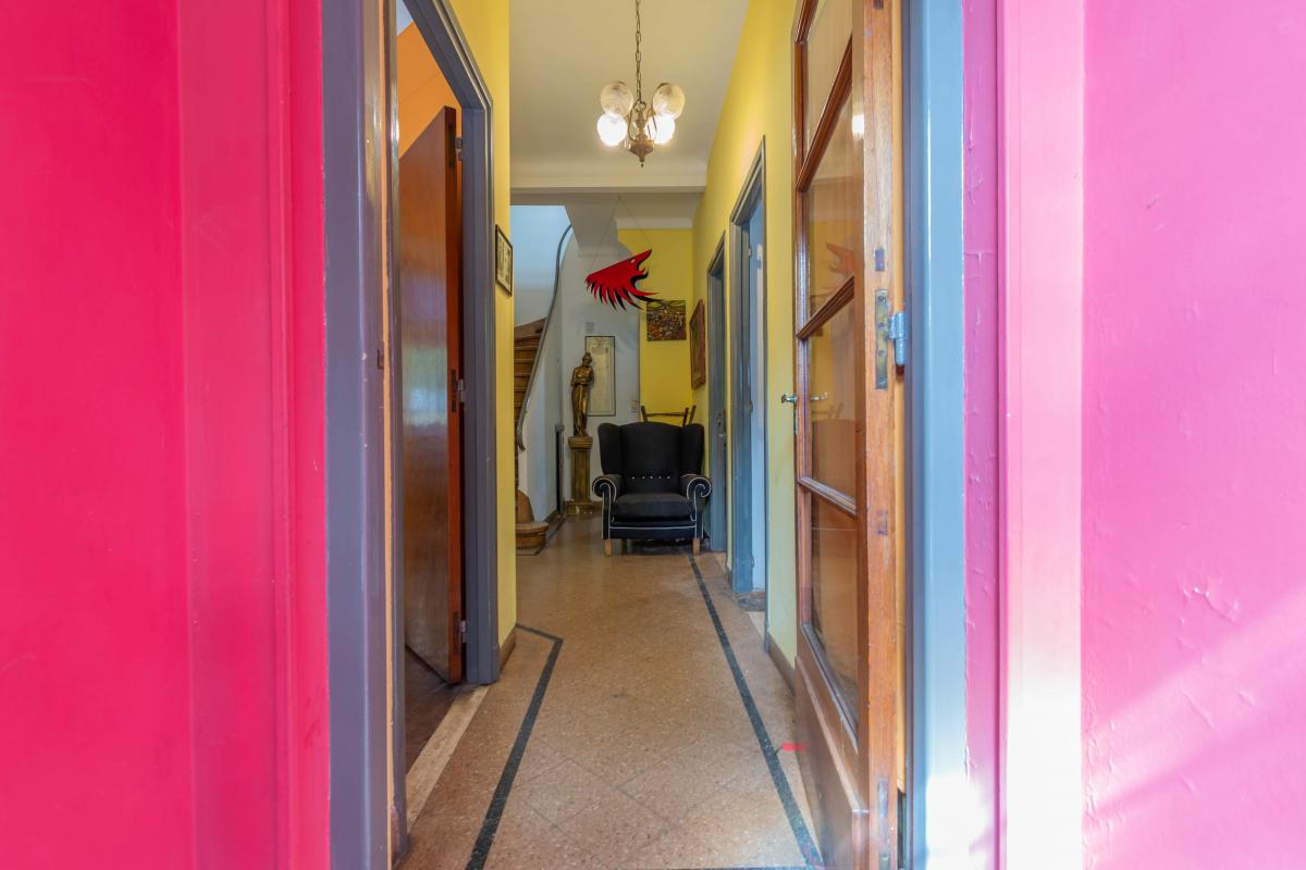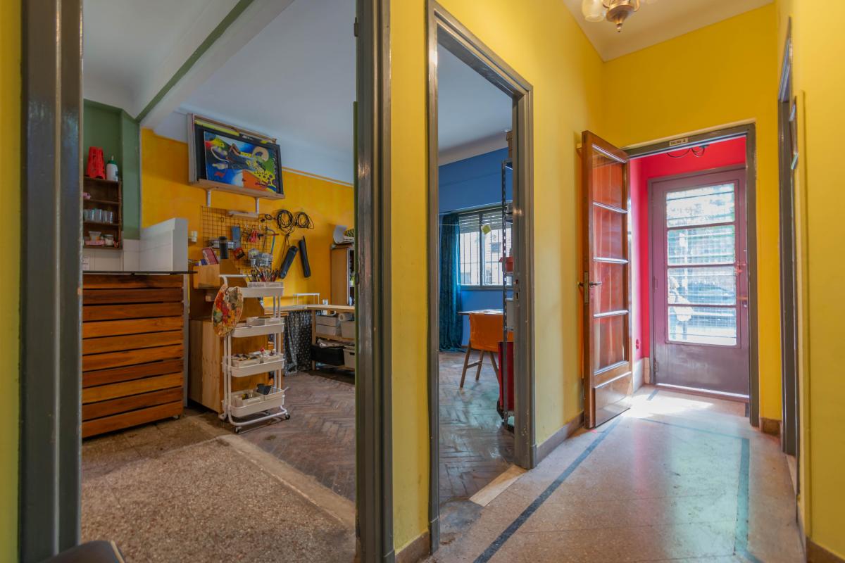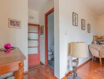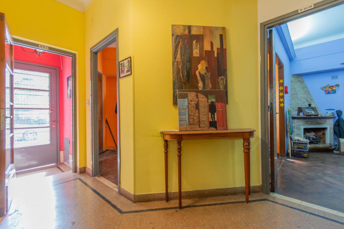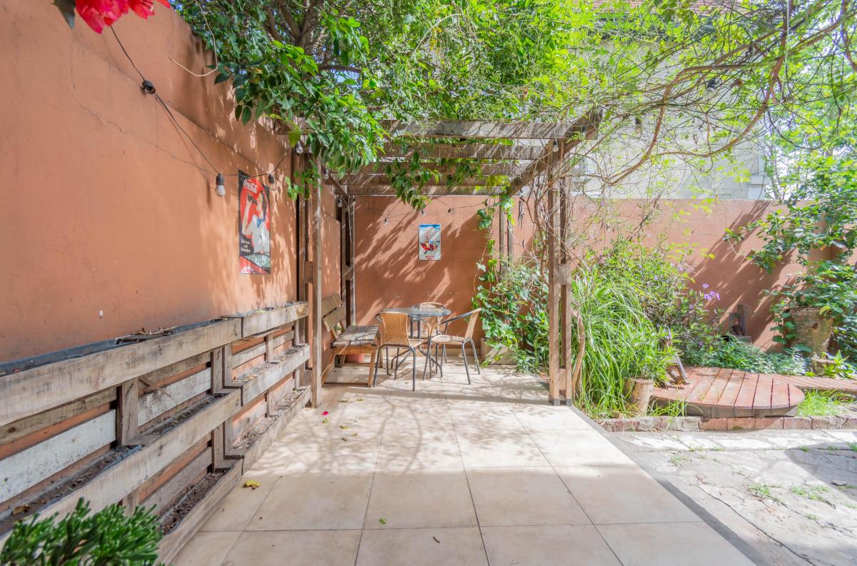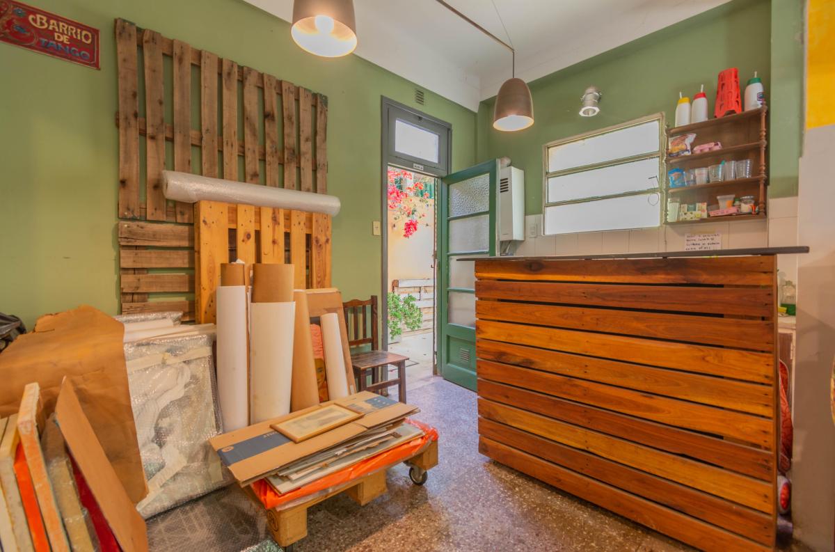 Se ingresa por Roque Pérez a un amplio hall, que distribuye al estar comedor con cocina integrada y a dos dormitorios, todos dando a la calle, muy luminosos y alegres. Un baño completo y hermoso patio jardín integrado a la cochera descubierta. Todo con materiales de época: pisos de parquet, carpinterías de madera. Baulera bajo escalera.